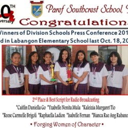 - Isabella Victoria S. Rosello – 1st Place, Editorial Writing in English, Elementary Level. Division Press Conference 2008