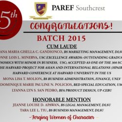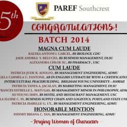- Alyssa Alexandra Y. Alfonso, 3rd Place, CALIDAD HUMANA NATIONAL ESSAY WRITING COMPETITION sponsored by the University of Santo Tomas, University of Asia and the Pacific, and the Embassy of Chile.