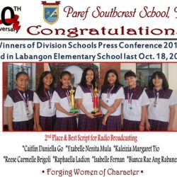 - Qualified to the National School’s Press Conference for Editorial Writing, Puerto Princesa Palawan.