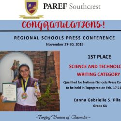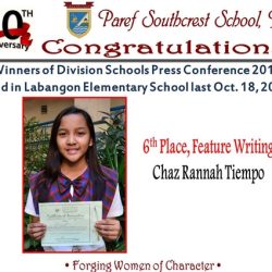 - Frances Matugas, 5th Place, Editorial Writing, Secondary Level, Regional Press Conference